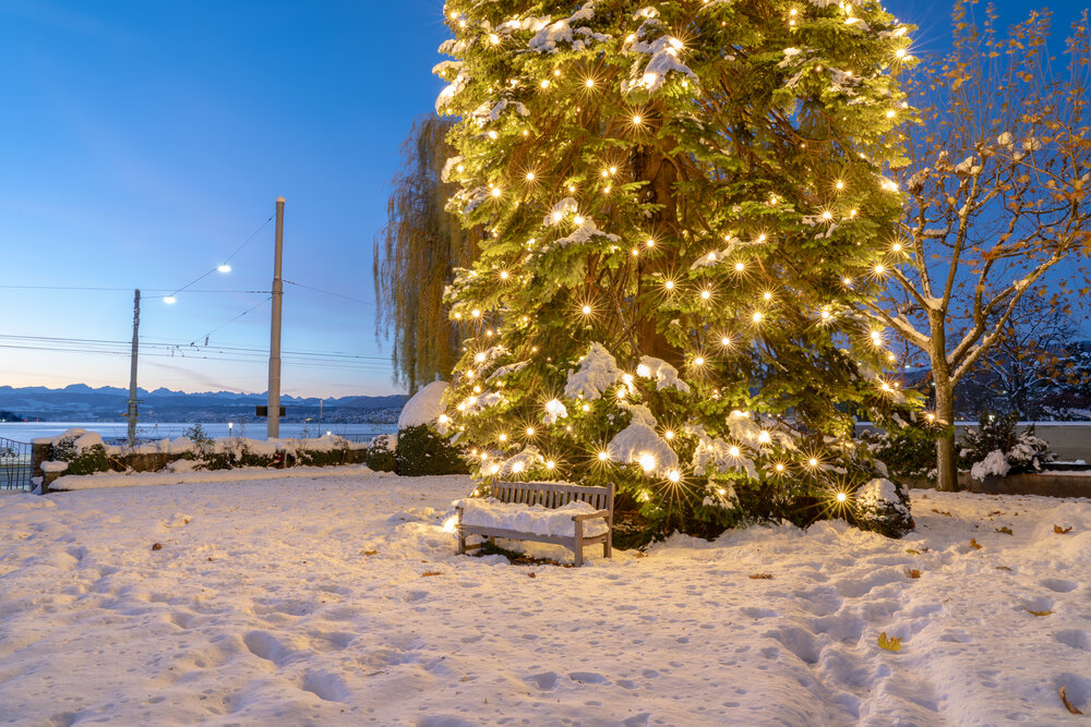 Für das traditionsreiche Luxushotel Baur au Lac in Zürich hat MK Illumination ein stimmungsvolles Lichtkonzept realisiert, das die weitläufige Gartenanlage in eine zauberhafte Winterlandschaft verwandelt. Großflächig beleuchtete Bäume, geschmückt mit warmweißen Lichtpunkten, schaffen eine einladende Atmosphäre und setzen elegante Highlights inmitten der verschneiten Natur. Die festliche Inszenierung verbindet Exklusivität mit saisonalem Charme und verleiht dem Außenbereich des Hotels eine unverwechselbare Ausstrahlung – ein visuelles Erlebnis, das Gäste wie Spaziergänger gleichermaßen begeistert.