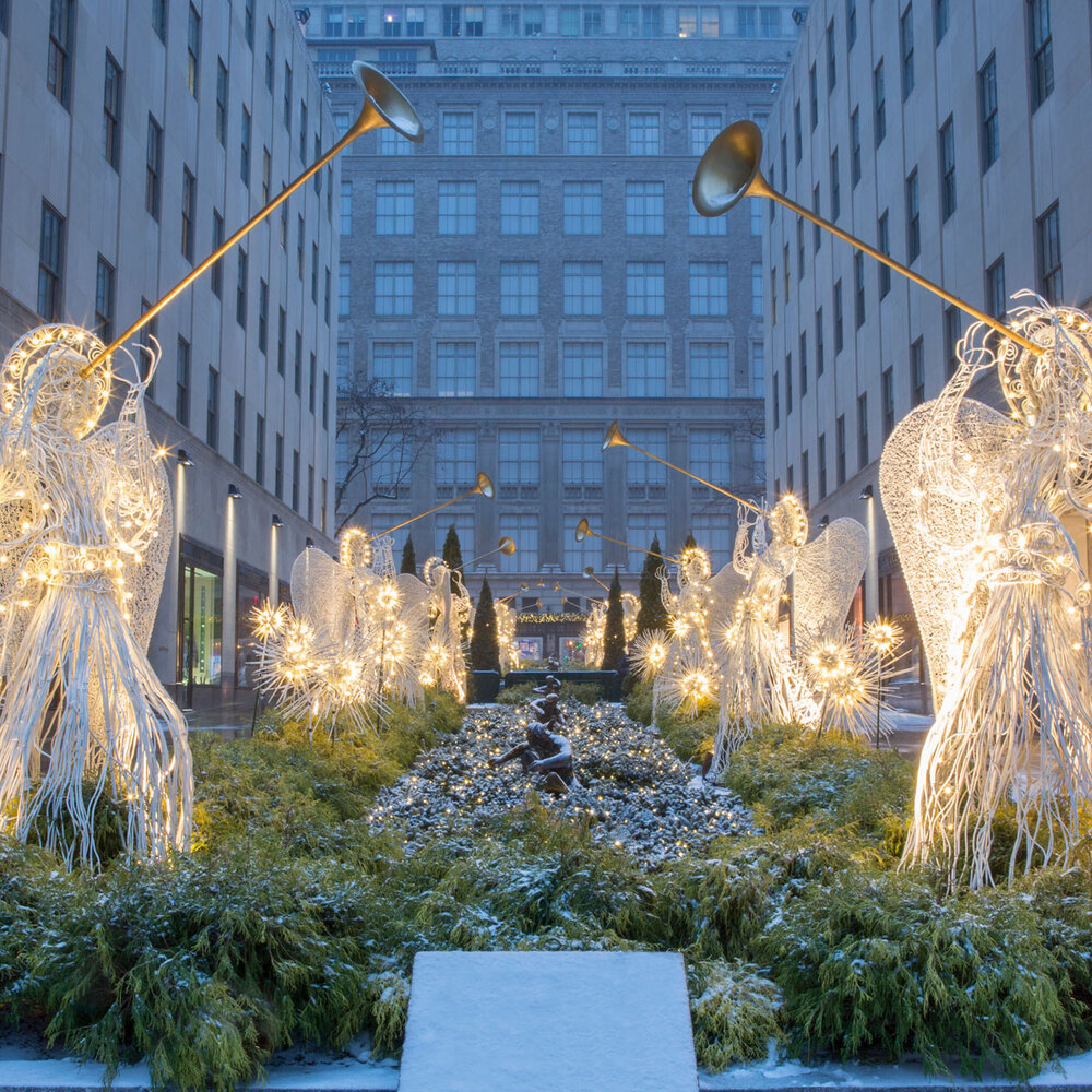 Throughout the year, the Rockefeller Center Channel Gardens bloom with unique floral arrangements, but as the holiday season approaches, the plaza is transformed into a dazzling display of glowing angels and a spectacular Christmas tree.
