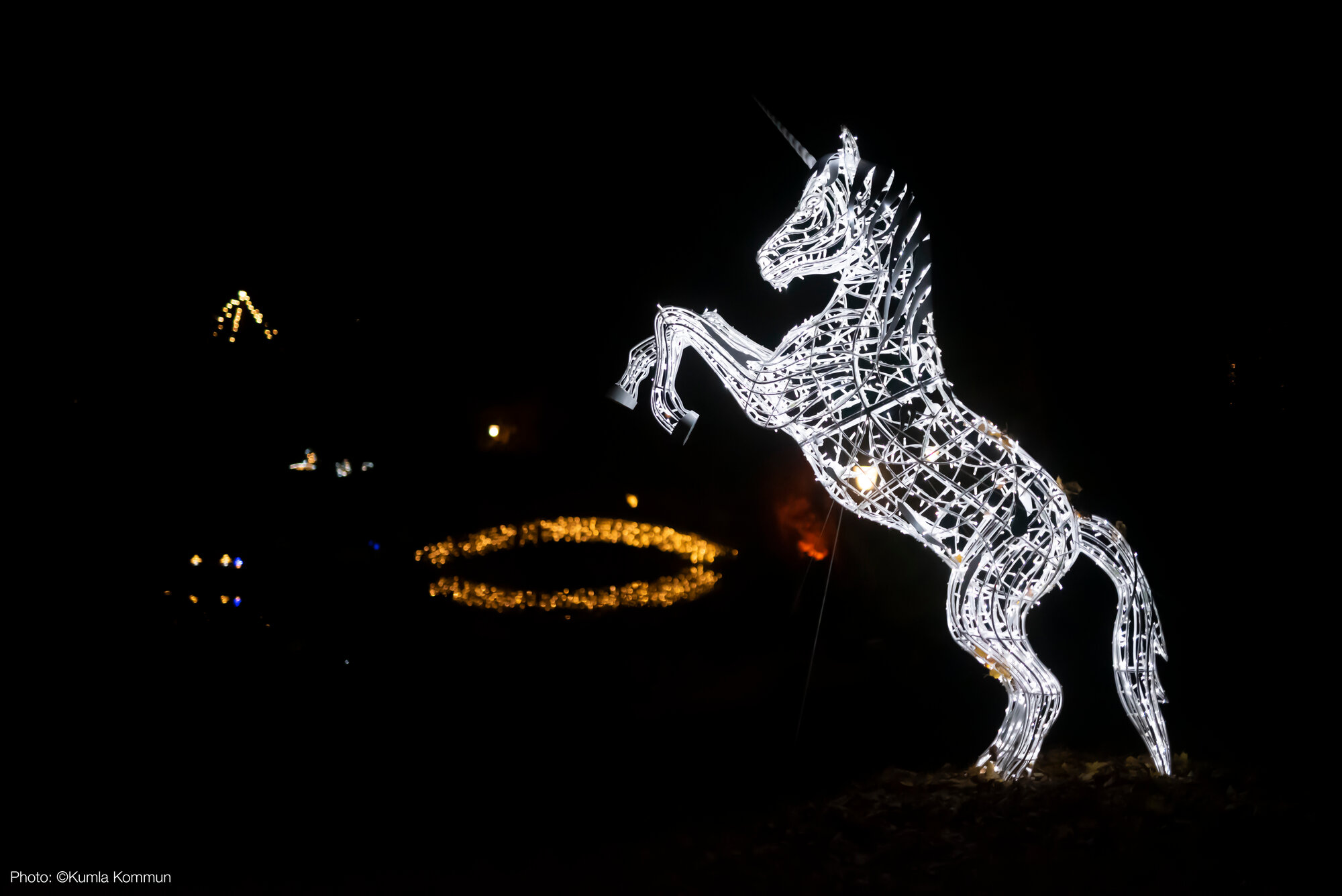 In 2022 the city of Kumla asked MK Illumination Sweden to help them transform the city’s main park into a light trail. MK came up with the concept of the Enchanted lake with four zones: The Ice Kingdom, The World of Fables, The Forgotten Forest and The End of the Rainbow.