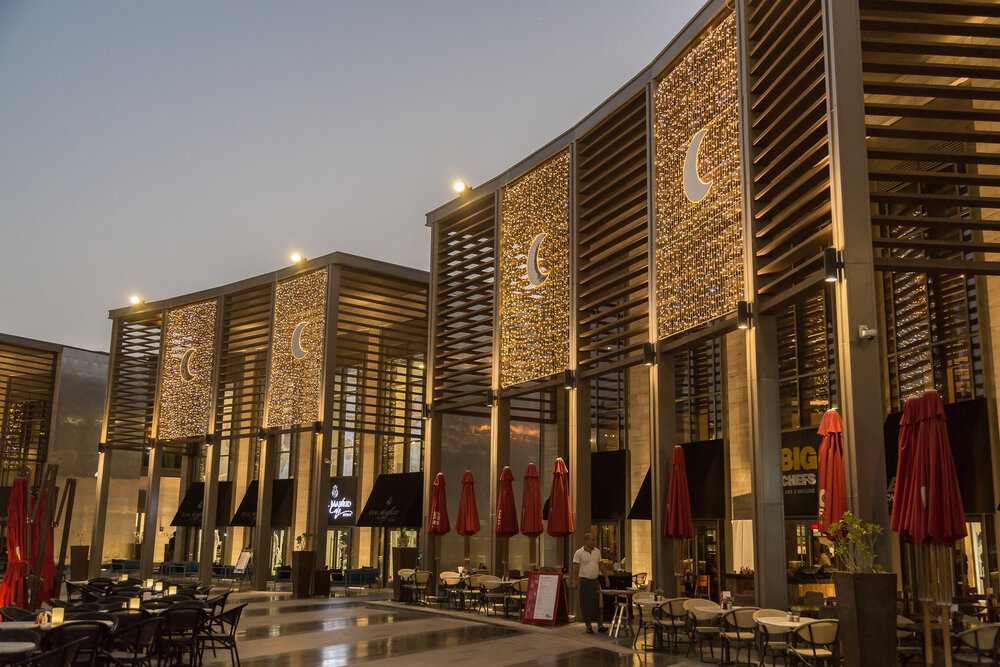 MK Illumination UAE and MK Illumination Turkey worked closely with the mall to design a series of new lighting motifs to give the outdoor area a festive feel. Drape Lites with reflective crescents were installed on the facade. Fan-shaped lanterns hung over the heads of visitors and colourful 2D crescents decorated with colourful balls adorned the palm trees. Visitors to the shopping centre felt welcome and enjoyed the inspiring atmosphere.
