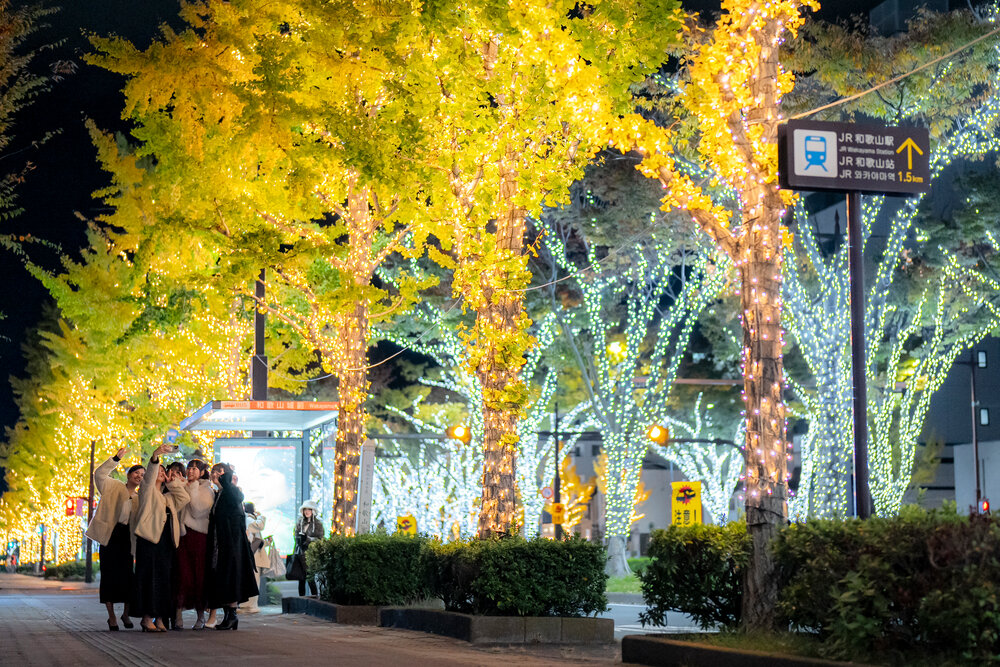 This project by MK Illumination Japan unites the world like a shining parade of glowing lights in Wakayama. During the three-month event in 2023, around 750,000 light bulbs illuminated some 278 trees along the approximately 2 km road between JR Wakayama Station and Wakayama Castle, transforming the road into a sparkling avenue of trees at night.