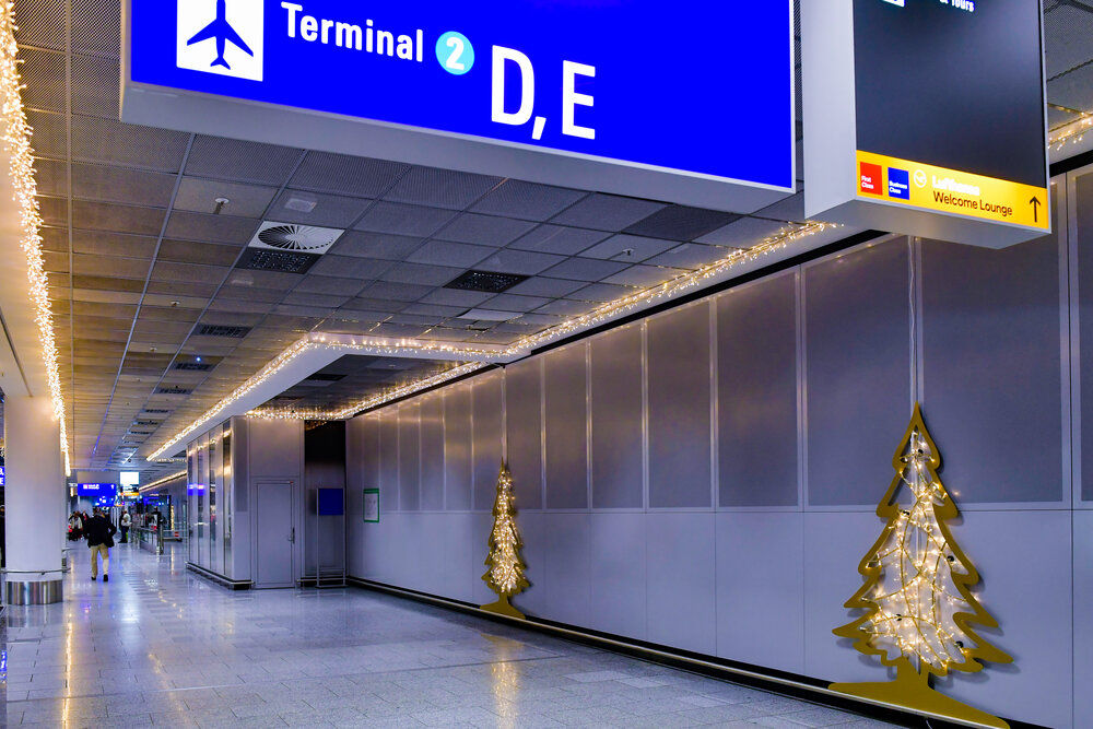 Bereits im Jahr 2014 realisierte MK Illumination erstmals eine festliche Weihnachtsbeleuchtung für den Frankfurter Flughafen.