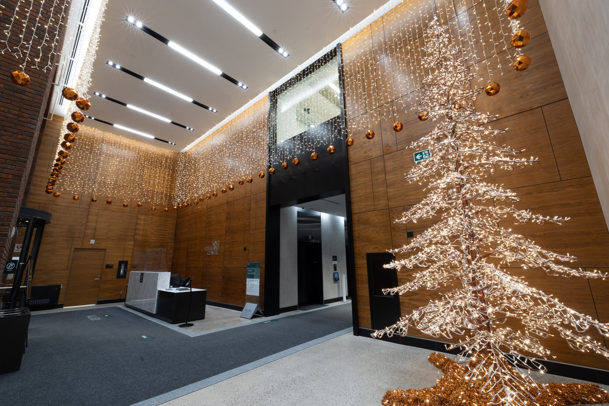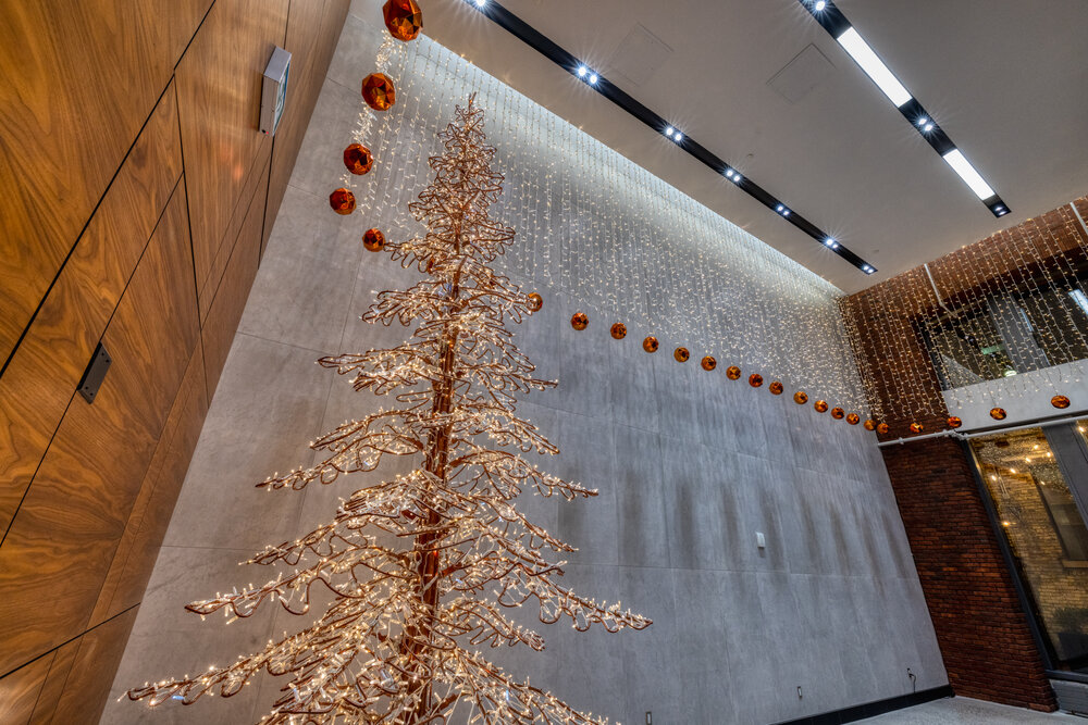 In the lobby of Toronto's award-winning 145 King West Building, two giant bundles of LED lights and glowing red baubles created a festive atmosphere. MK Illumination perfectly matched the decorative concept to the simplicity of the building in the heart of Toronto's financial district, which is already renowned for its many special features such as its LED certification. A creative continuation of this highly decorative concept was already planned for 2017.