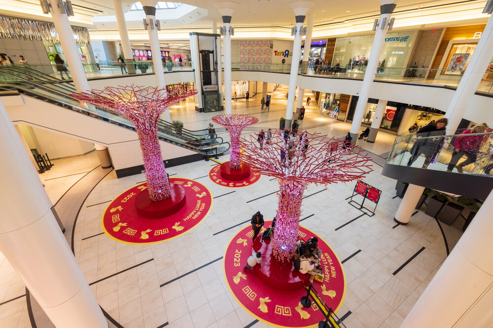 Dans le cadre du Nouvel An lunaire 2023, nous avons créé une installation captivante qui a été dévoilée dans cinq des centres commerciaux les plus importants et les plus fréquentés du Canada. L'exposition, présentée en janvier et février 2023, s'inspirait du Supertree Grove, un symbole spectaculaire de Singapour.