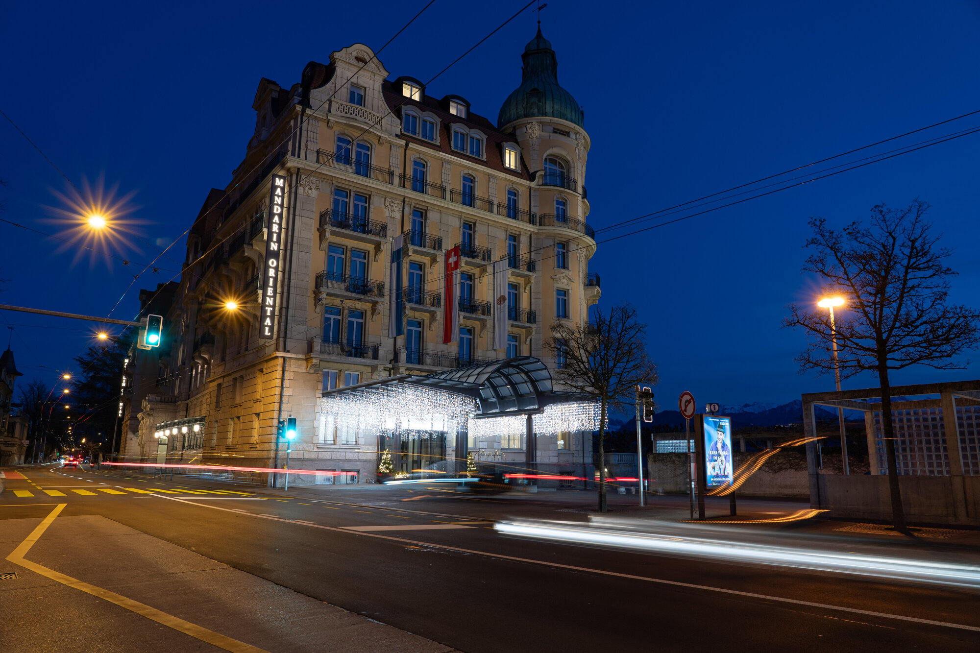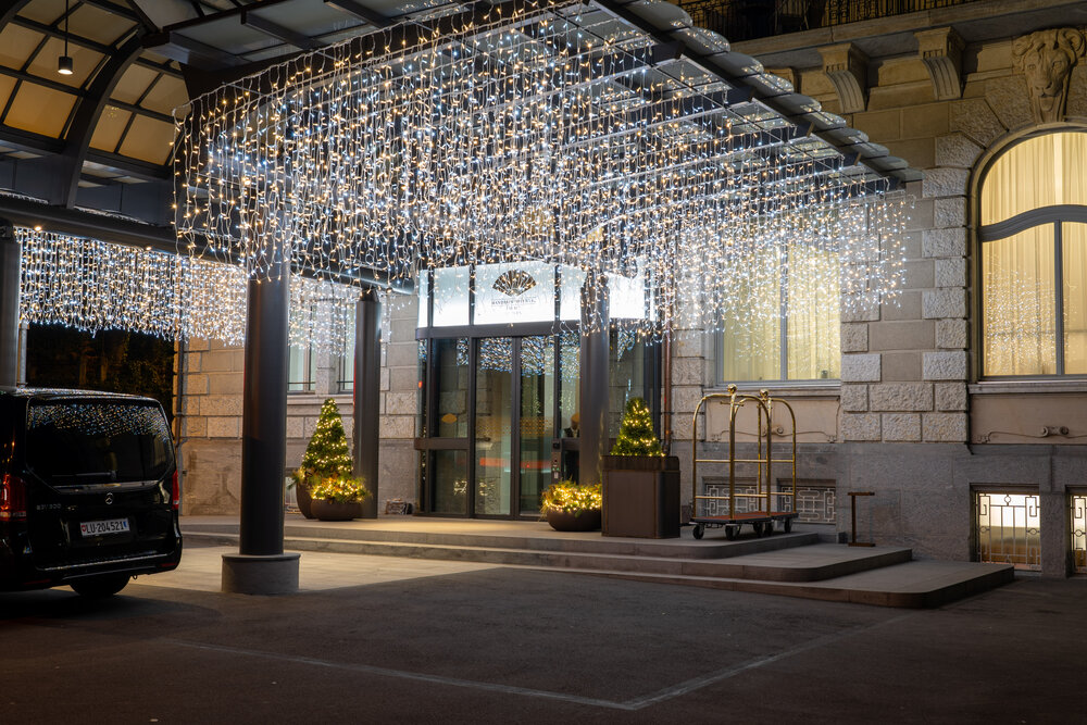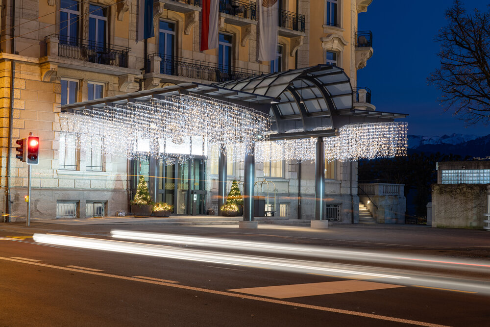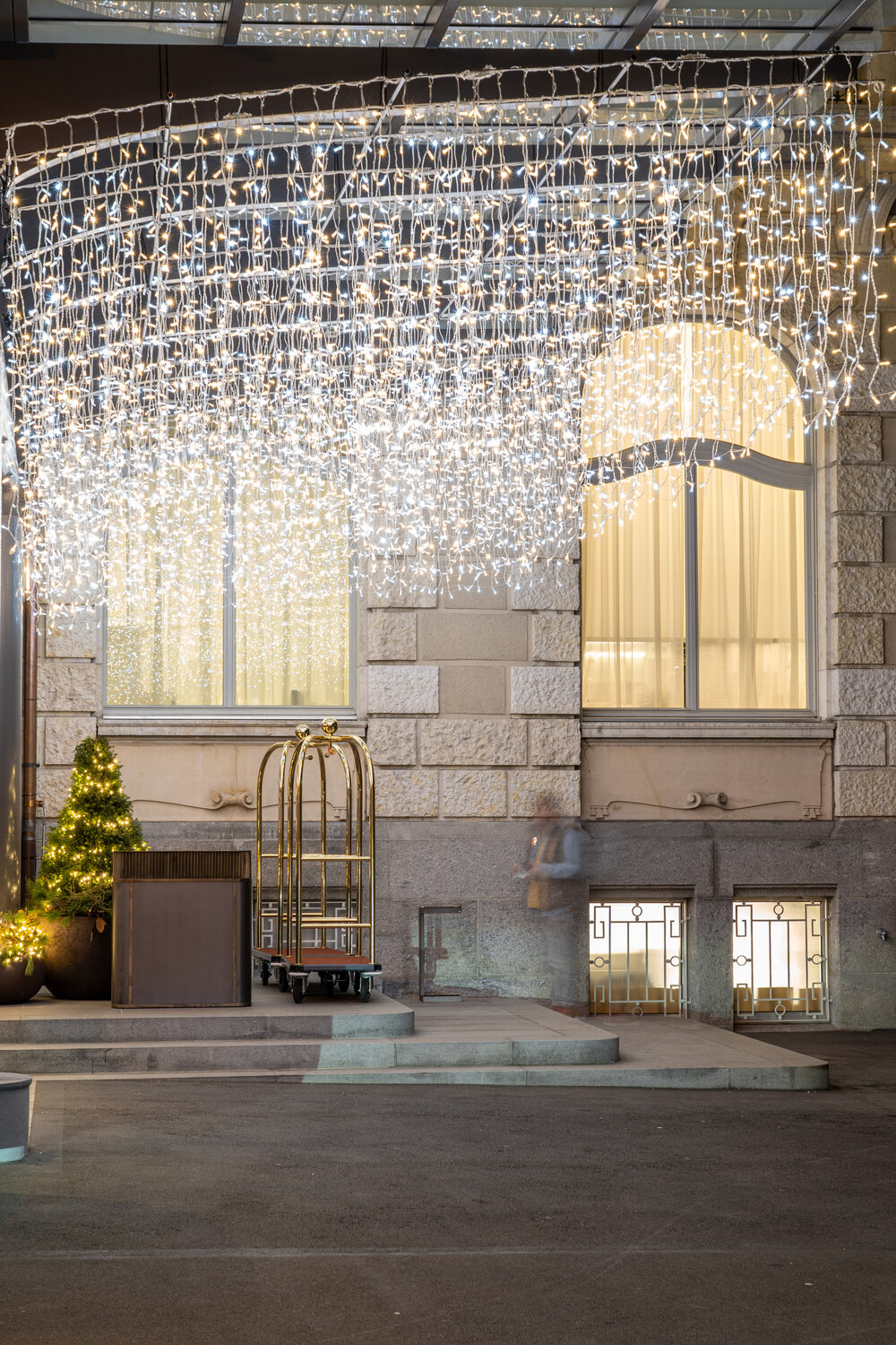 Un concept d'éclairage exclusif a été développé pour le prestigieux hôtel de luxe Mandarin Oriental en Suisse, alliant harmonieusement élégance, modernité et ambiance festive. Les rideaux lumineux à la mise en scène élaborée créent une mise en scène éblouissante de la façade et de l'entrée.