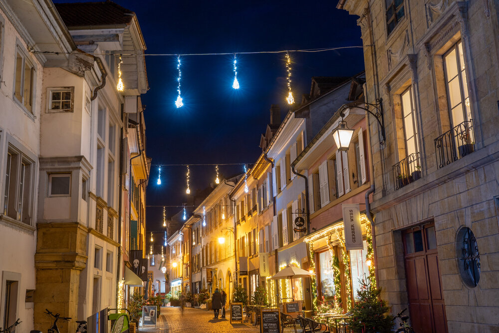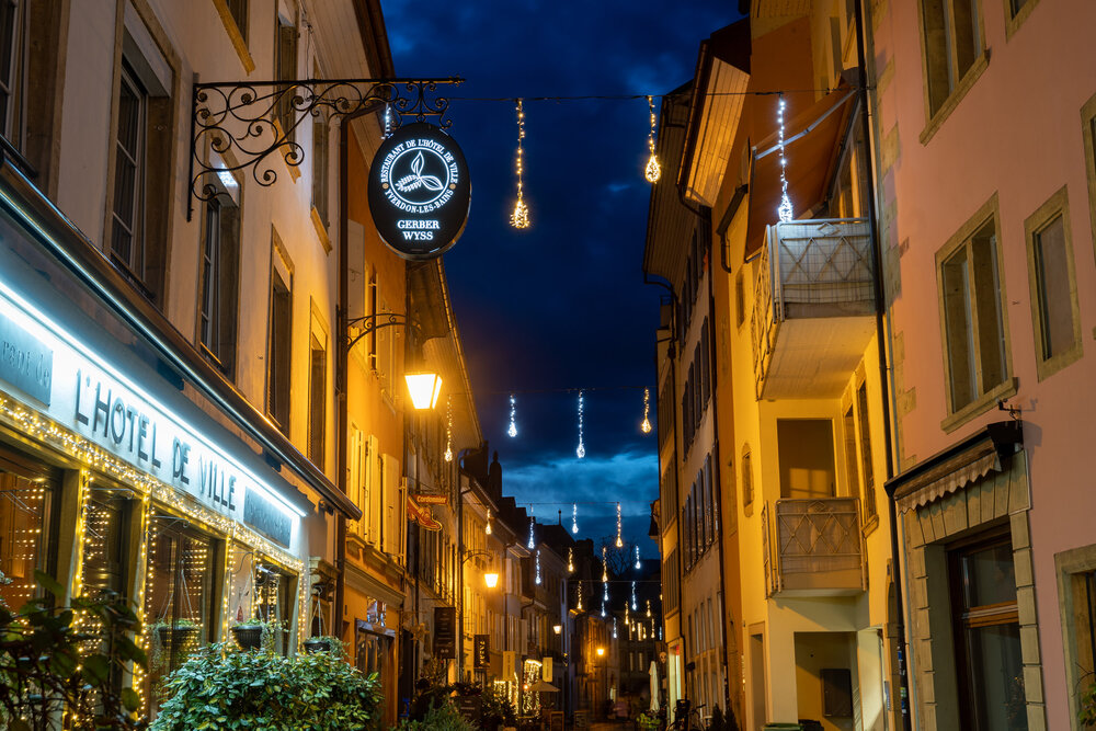 Für das charmante Stadtzentrum von Yverdon-les-Bains wurde ein stimmungsvolles Lichtkonzept realisiert, das Tradition und festliche Eleganz vereint. Die Weihnachtsbeleuchtung schafft mit gezielt eingesetzten Lichtelementen eine warme, einladende Atmosphäre und verwandelt die Innenstadt in einen magischen Begegnungsort.