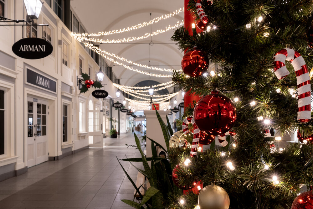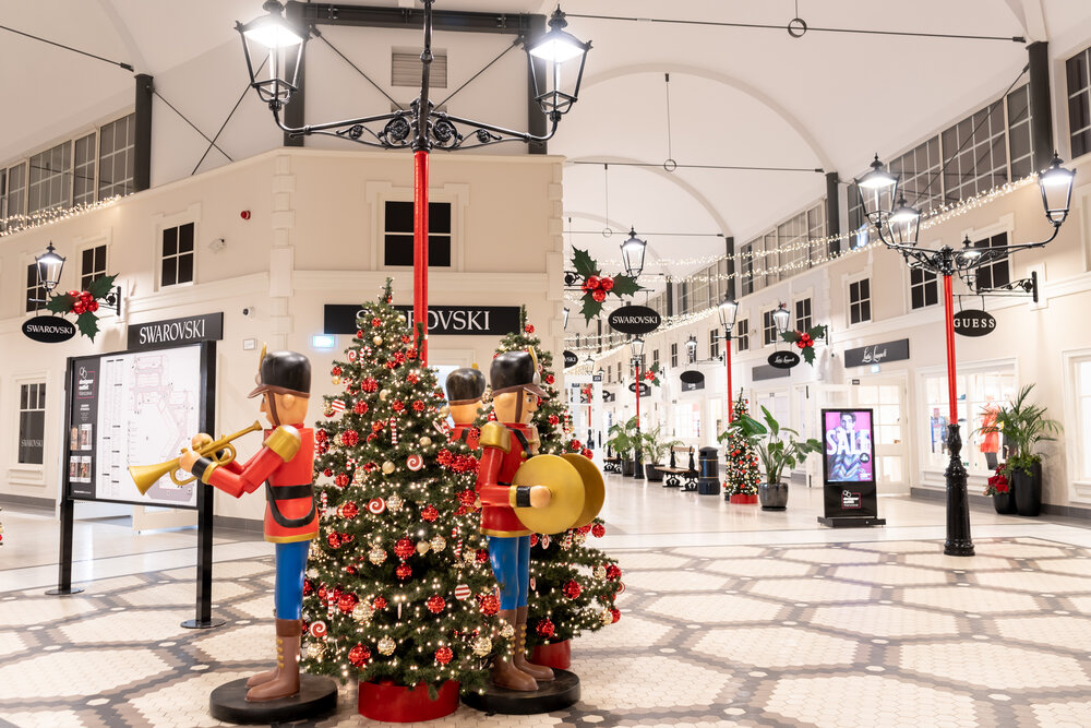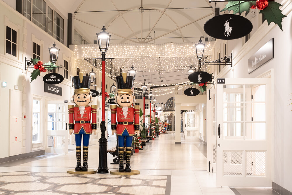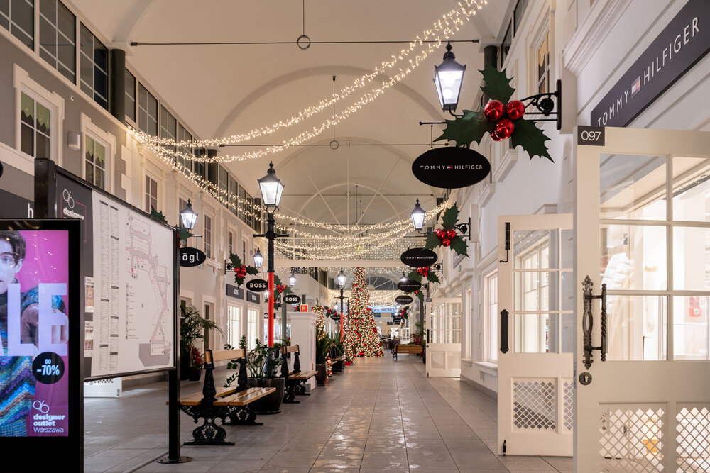 Designer Outler shopping centres have a very original and distinctive architecture, so creating a decoration for them is always a kind of an exciting challenge, for sure. This year main theme demanded by the brief was to follow the "American Christmas" style, so we decided to highlight the strong features of interiors by introducing a very classical elements of decoration.