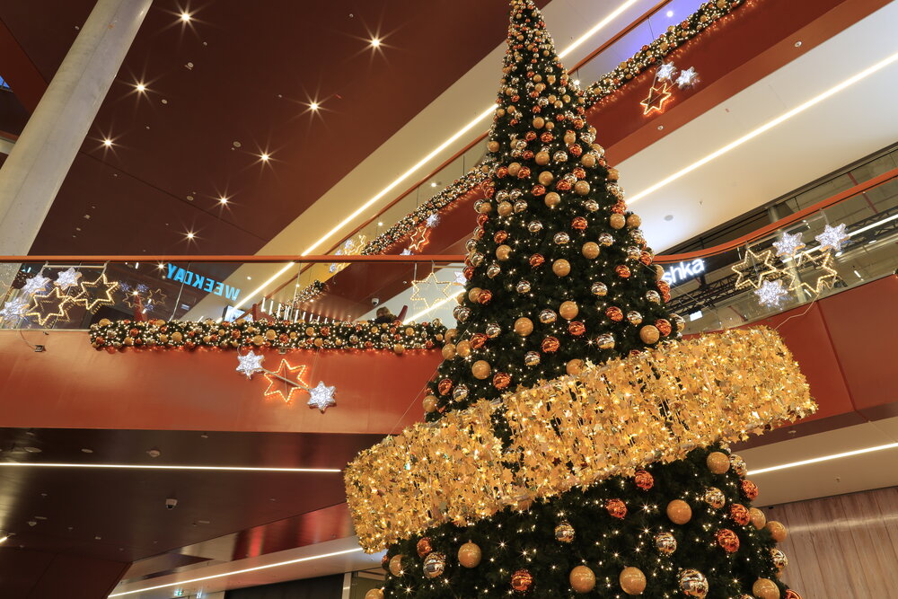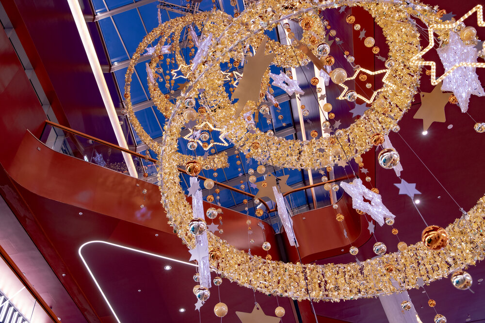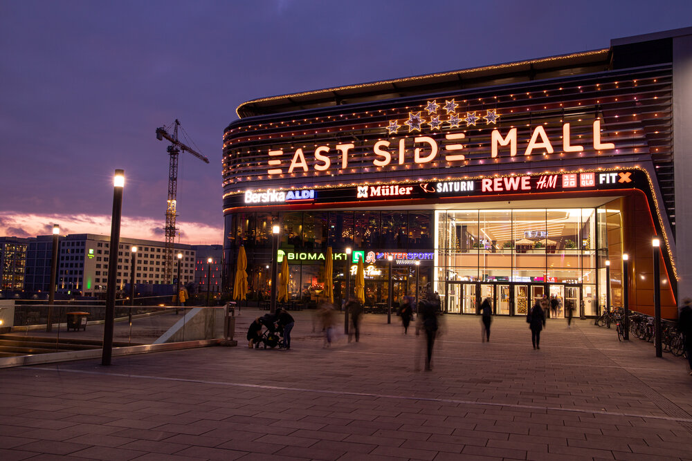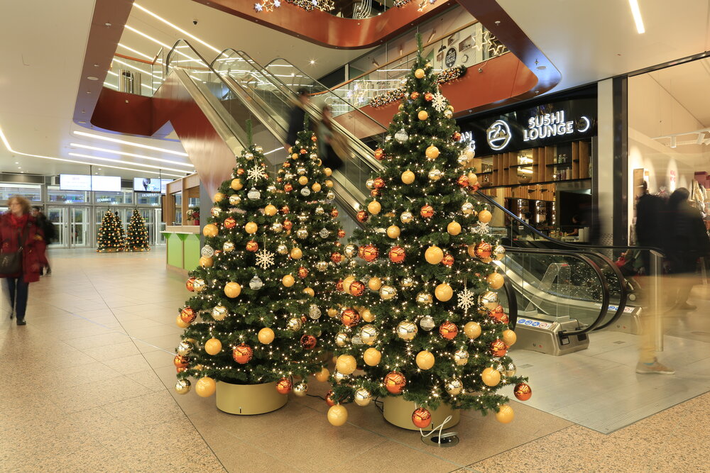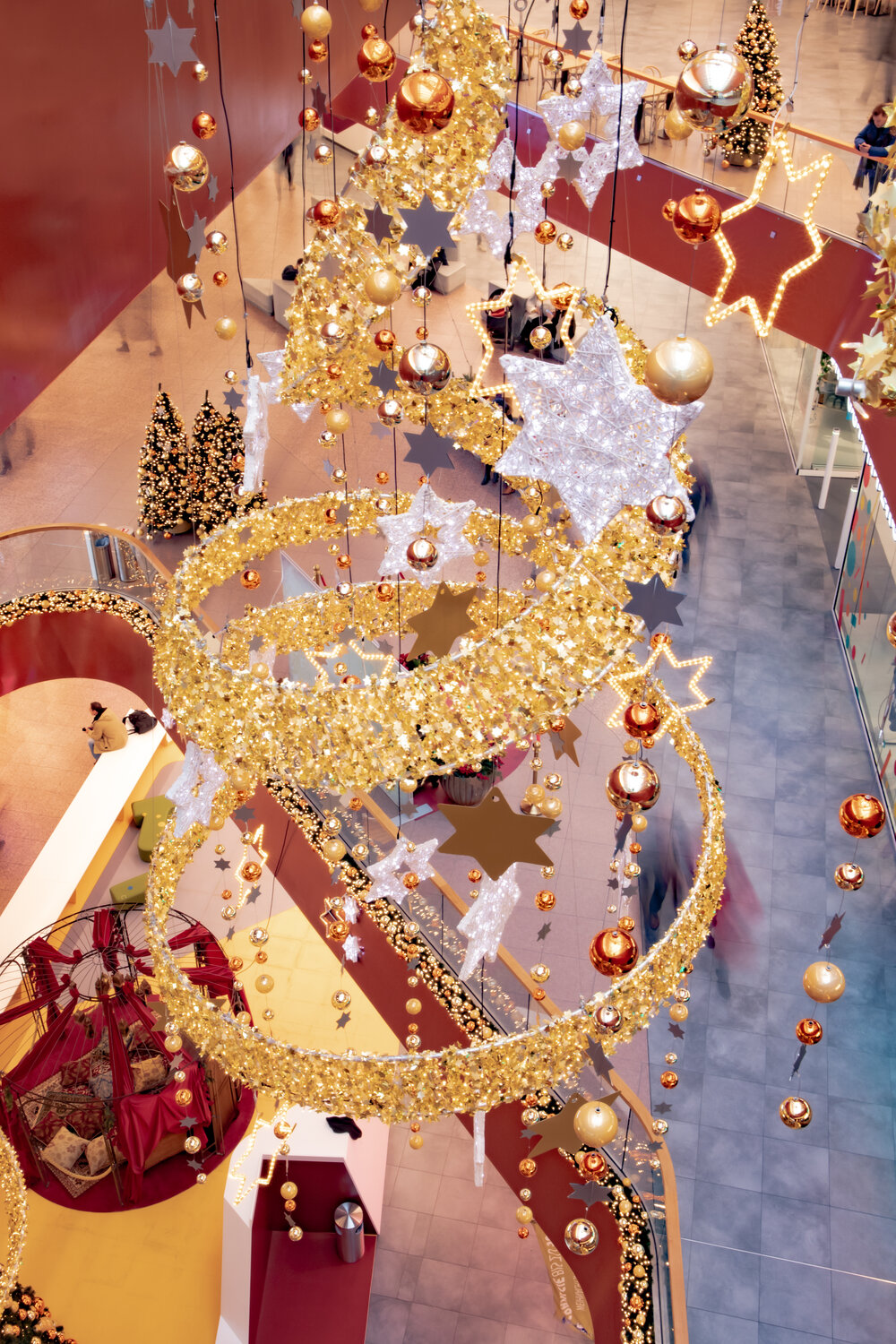 Im Jahr 2018 haben wir die East Side Mall in Berlin mit funkelnden Lichtern und grünen Bäumen dekoriert. Und dem bei weitem nicht genug: goldene und orange funkelnde Kugeln an den Bäumen in perfekter Harmonie mit warmweißen Lichtern, sorgten zudem für ein festliche Weihnachtszeit im Center. Das stimmige Farbkonzept fügt sich perfekt in die bestehende Architektur ein.