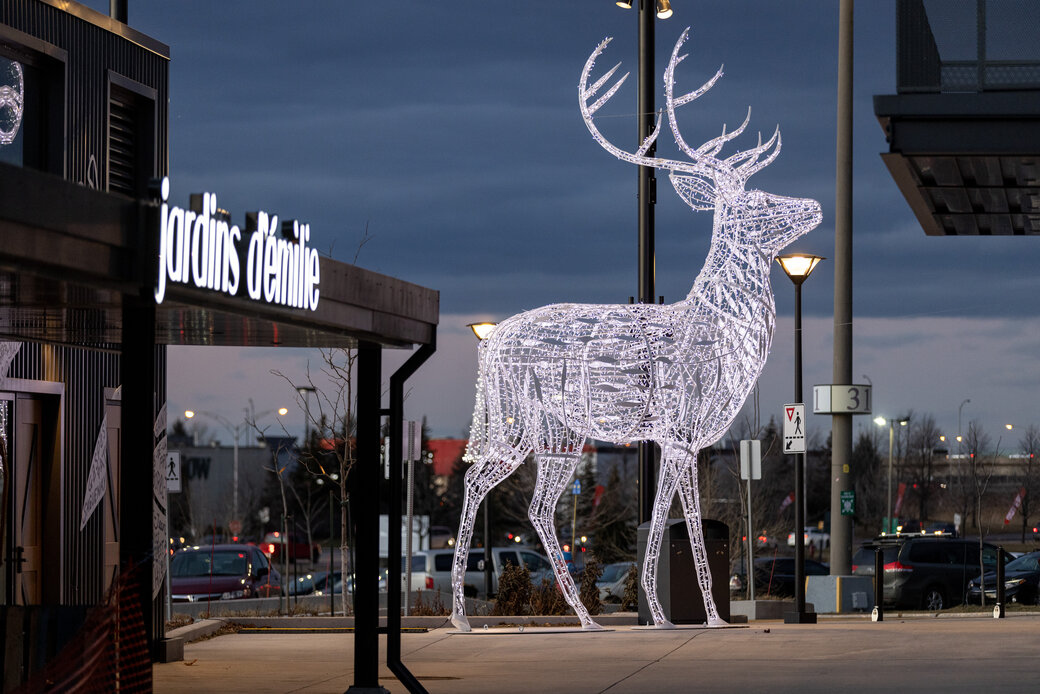 L’équipe de MK Illumination a produit plus de 400 articles à couper le souffle, dont des décors et de l’éclairage surdimensionnés comprenant des arches ornementales, des créatures illuminées à DEL, comme des rennes et des orignaux, ainsi que de superbes décorations suspendues personnalisées. Ils ont également créé des lounges festifs en plein air, aménageant des espaces avec des foyers où les invités pouvaient venir se réchauffer, se détendre et apprécier l’ambiance confortablement assis sur des chaises Adirondak et des bancs, tout en savourant la nourriture et les boissons du temps des fêtes offertes par les fournisseurs participants.