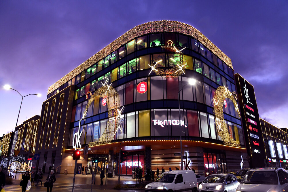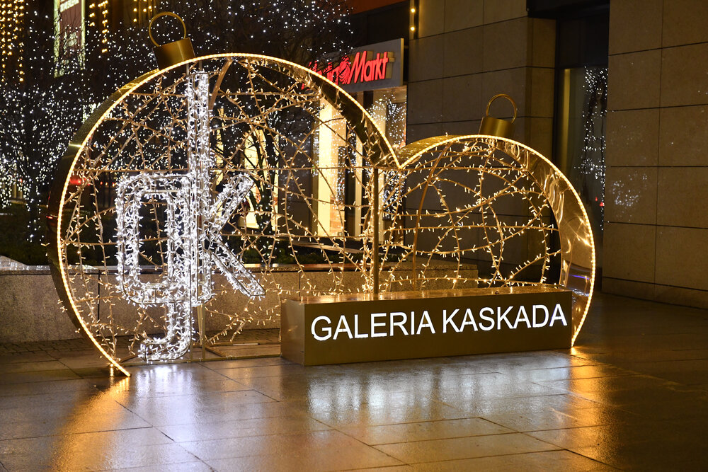 This year's Christmas celebrations literally covered the entire Cascade Galleries in Szczecin. The lighting consisted of more than 320,000 light points. Thousands of light bulbs illuminated the gallery building. The monumental glass facade was illuminated with Christmas motifs in the shape of a ball.
