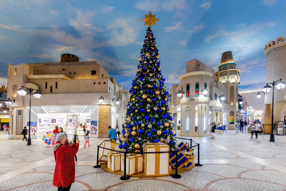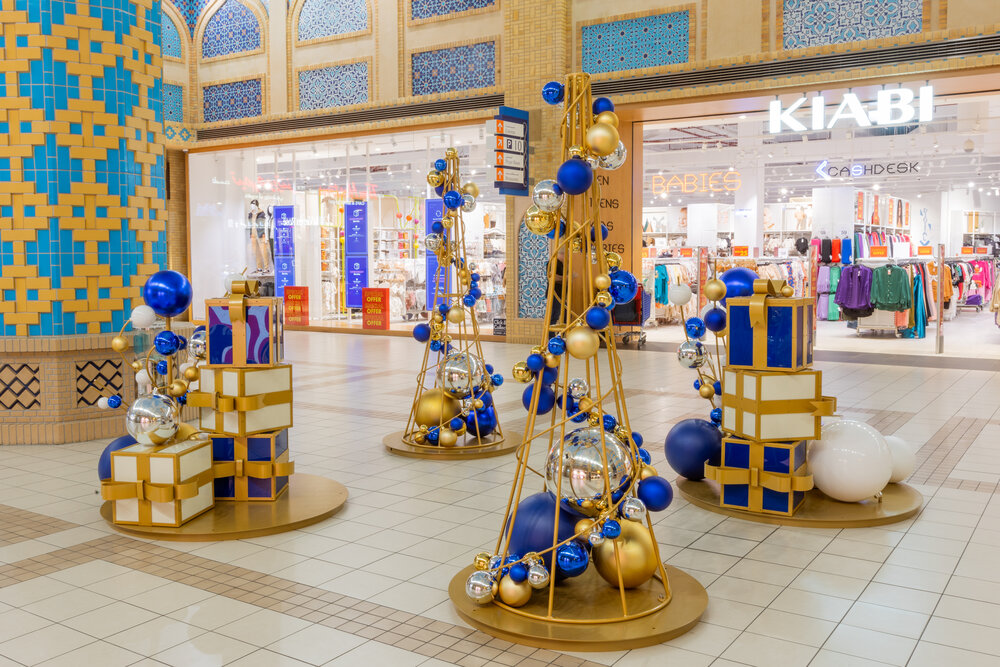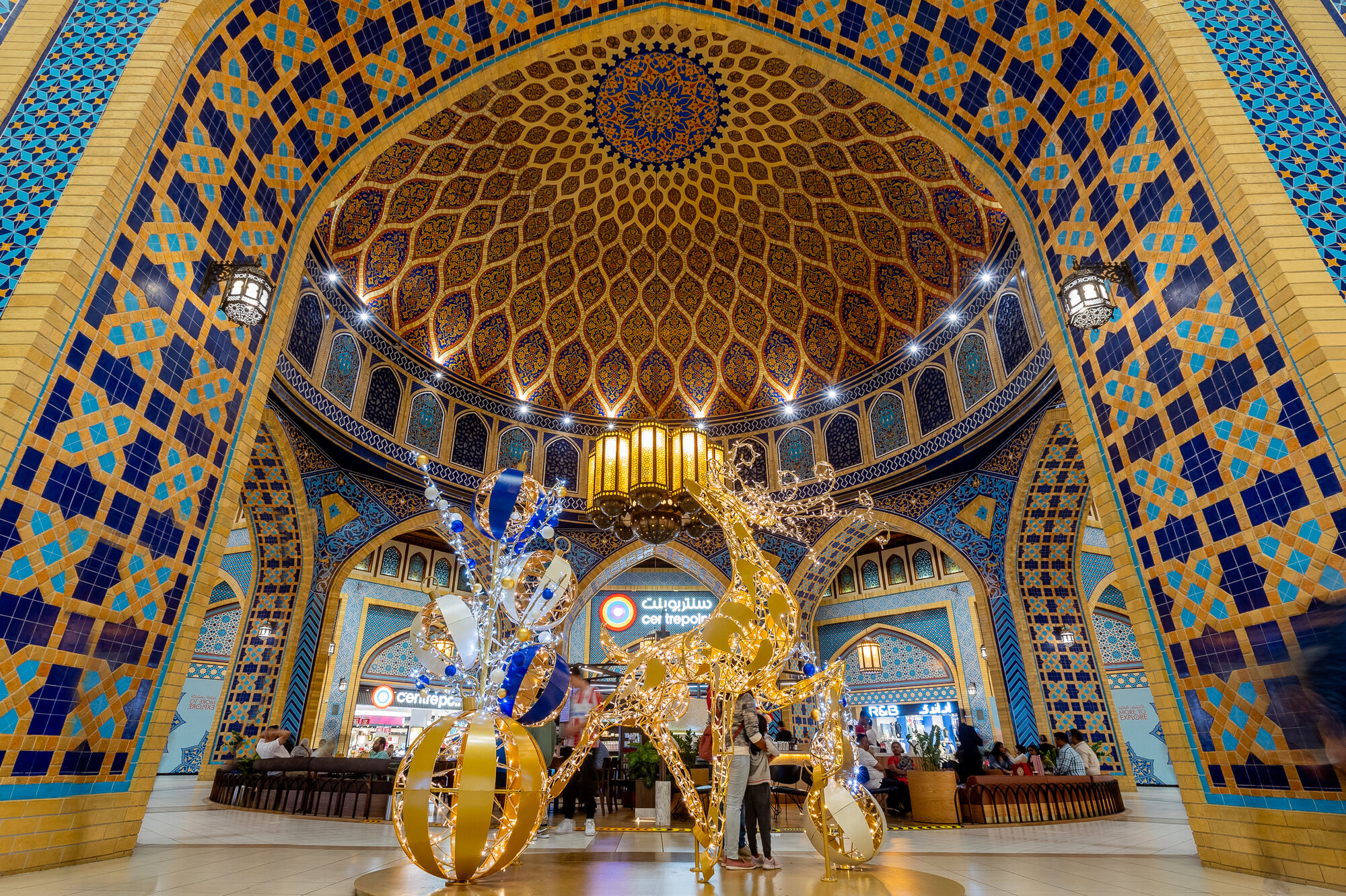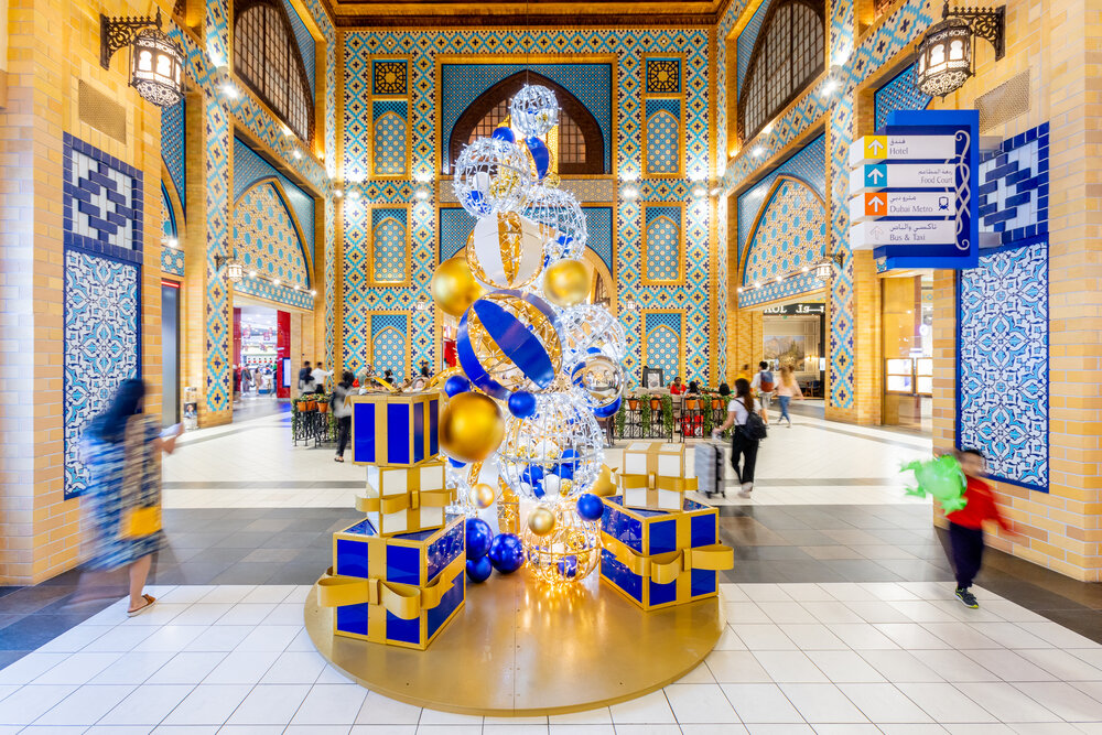 Embracing the New Year with majestic style, IBN Battuta Mall in Dubai is a spectacle of cultural richness and celebratory spirit. The mall's architecture, steeped in the region's heritage, features magnificent decorations in dark blue, gold, and white. These adornments, with their elegant lines and traditional patterns, mirror the architectural types and resonate with the festive season's joy.