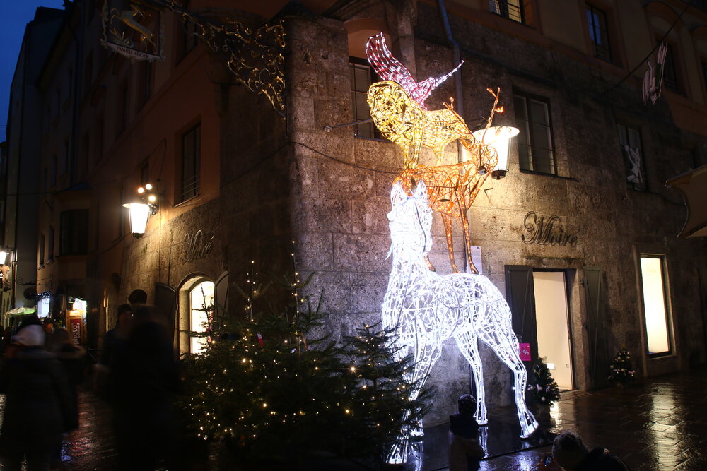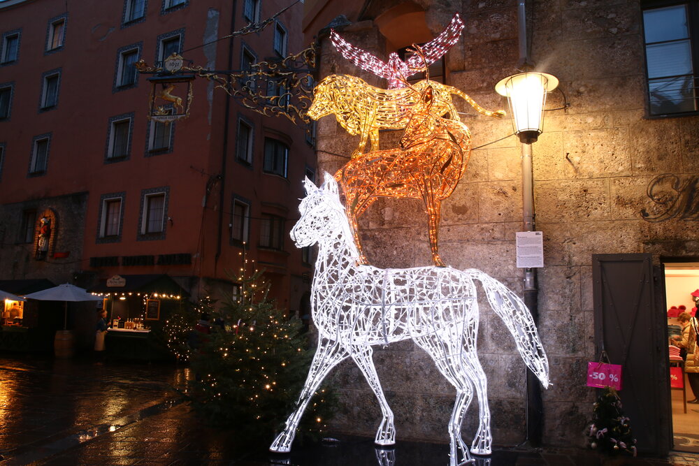 Neben der weihnachtlichen Beleuchtung der Christkindlmärkte, ist die Stadt mit hunderten festlichen Lichtmotiven aus den MK-eigenen Manufakturen geschmückt, die auf die Besonderheiten der Alpenstadt Bezug nehmen - das Spektrum reicht dabei von glänzenden Skifahreren, heimischen Wildtieren wie dem Steinbock bis hin zu besonderen Alpenblumen wie dem Edelweiß.
