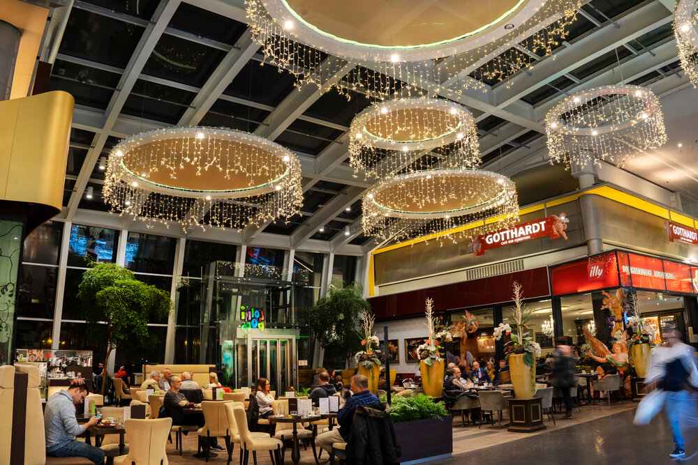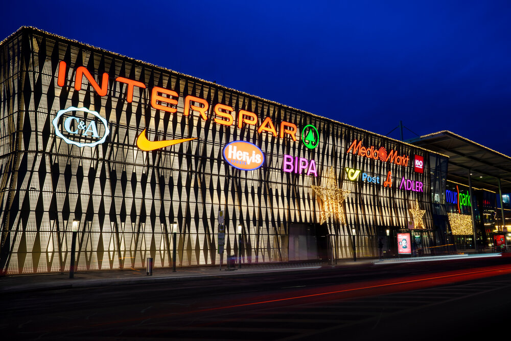 Das Einkaufszentrum MURPARK in Graz bietet eine vielfältige Auswahl an internationalen Einzelhändlern und Restaurants. Um das gehobene Image zu untermauern, wurde das Einkaufszentrum stilvoll mit einer traditionellen anmutenden Weihnachtsdekoration - in der die Farben Rot und Gold das Erscheinungsbild prägten - inszeniert.