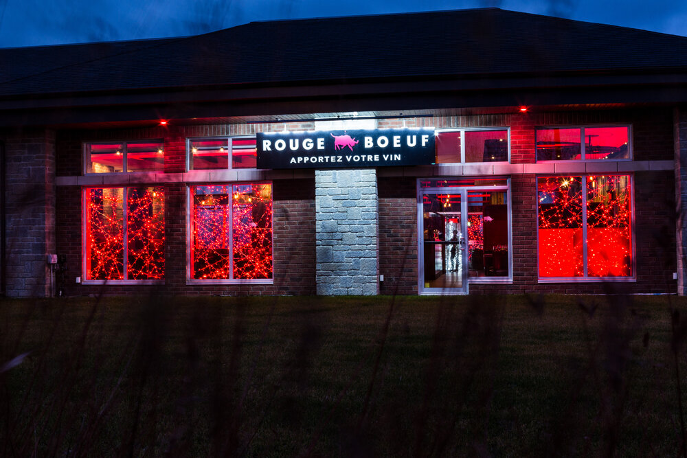 Rouge Boeuf is located on the outskirts of Montreal and offers its guests a cosy atmosphere. The restaurant's management wanted to create a festive atmosphere that supported their branding. MK Illumination Canada East created a Christmas dream in red by decorating the restaurant's windows with red LED strands. The restaurant was visible from afar, and the cheerful glow of the lights greeted visitors from afar.