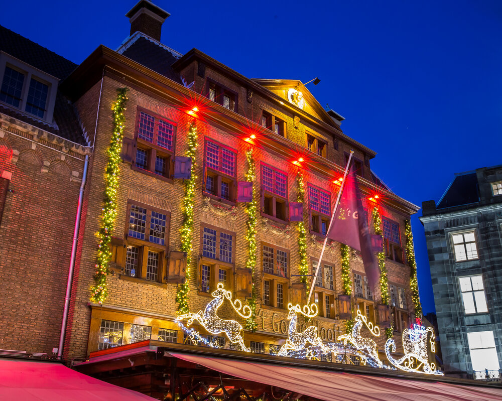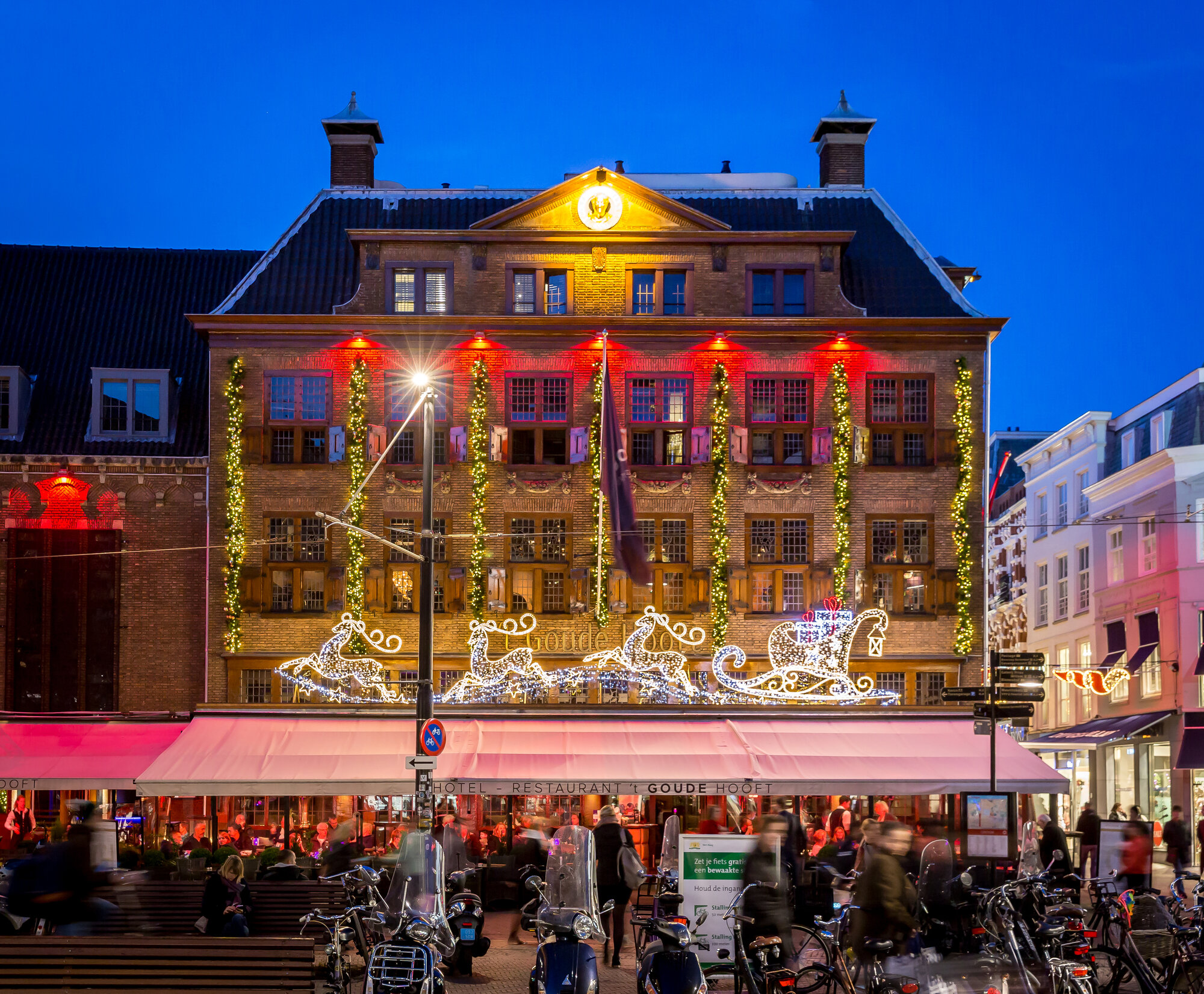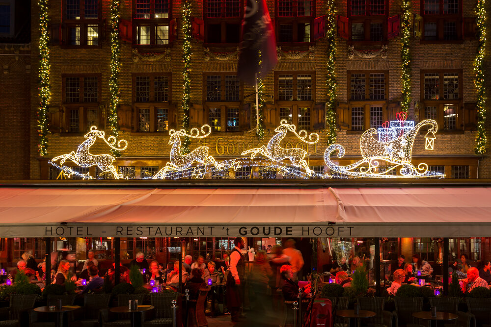 Seit mehr als 600 Jahren ist die Taverne Goude Hooft in Den Haag ein kulinarischer Hotspot und ein beliebter Treffpunkt für Menschen aus der ganzen Welt. Im vergangenen Winter sollte das legendäre Gebäude im Herzen der Stadt mit einer ganz besonderen Weihnachtsbeleuchtung zum Stadtgespräch werden. MK Illumination zauberte eine Mischung aus weihnachtlichen Motiven und Lichtergirlanden an die Fassade des Gebäudes. Schlitten, Hirsche, rote Lichter - Prost!