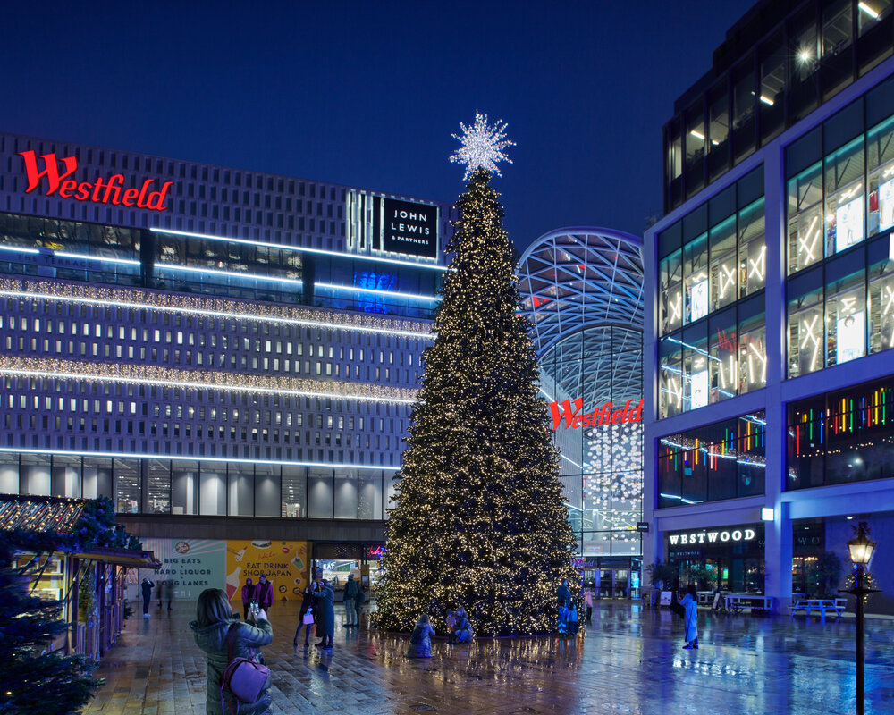 Westfield London is the largest shopping center in Europe with an annual footfall of more than 27 million visitors and a retail area of 150,000 m². The carefully designed 10th anniversary campaign in 2018 spanned the entire year and included events and entertainment formats. The center management was always aware of the importance of the Christmas season and the associated Christmas business and so the festive lighting and decorations inside and outside were redesigned in the anniversary year.