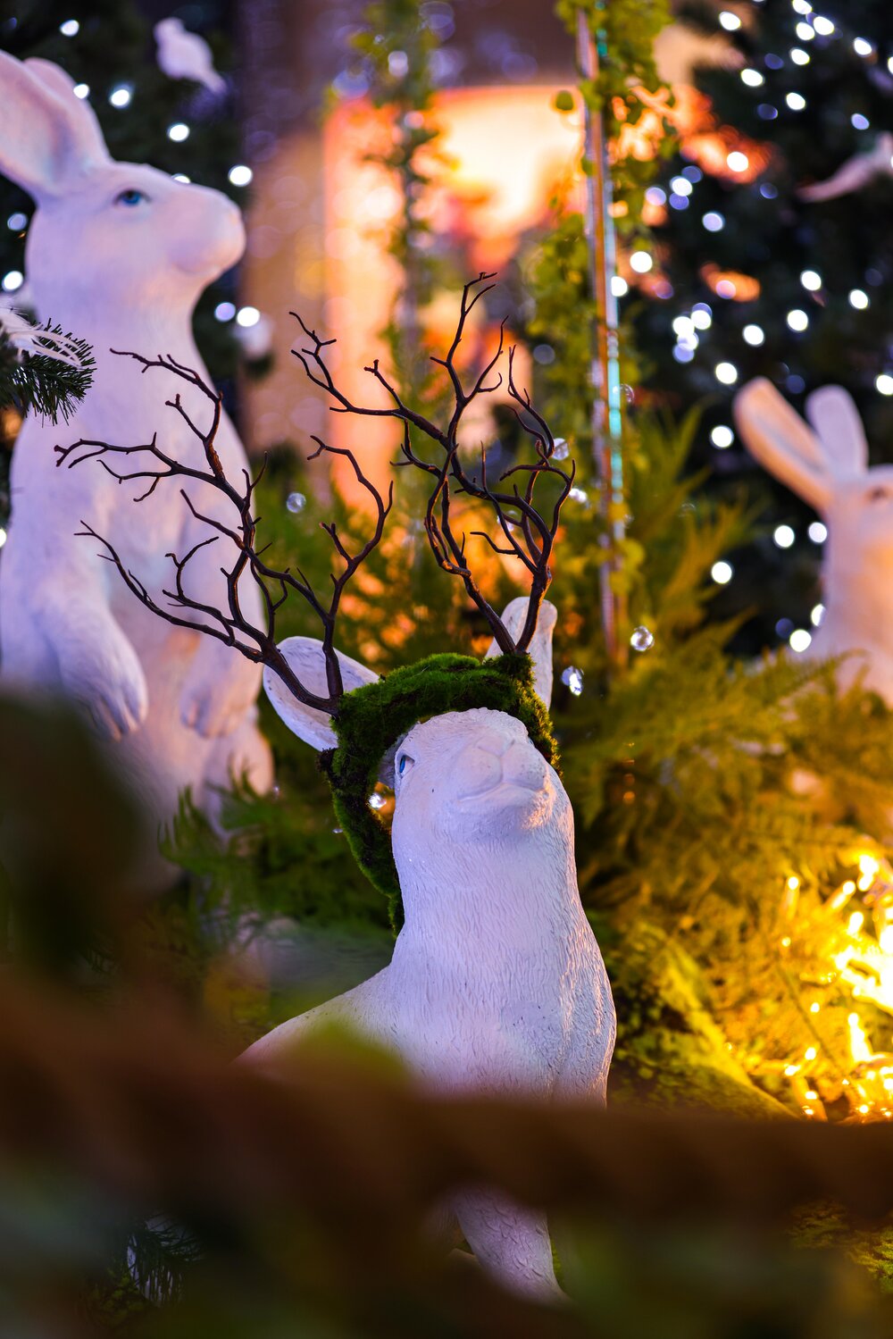 The result was the "Wow, vinterlandskap" (Wow, Winter Wonderland) project, featuring 310 animals, two sleighs, a gift-laden sleigh, a striking unicorn, birch trees, budgies and giant icicles, all glittering with lights and decorations.